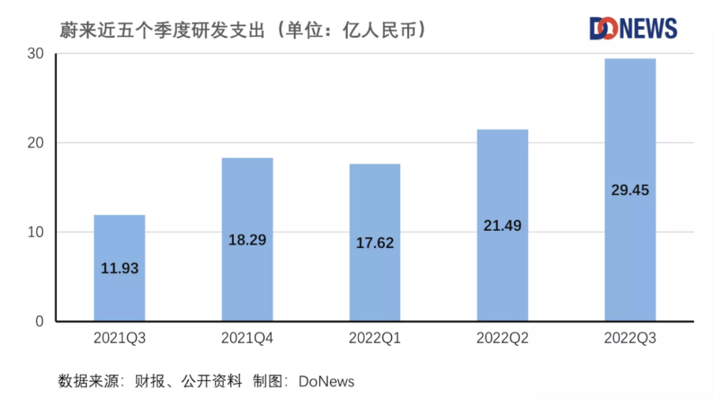 在今年第二季度,蔚来的研发费用就已经达到21.49亿元,远超理想的15.3亿元和小鹏的12.65亿元。李斌透露:“在研发费用这一部分,整个研发的布局和工作的开展基本定型了。以后研发费用差不多会保持在1个季度30亿人民币左右。”