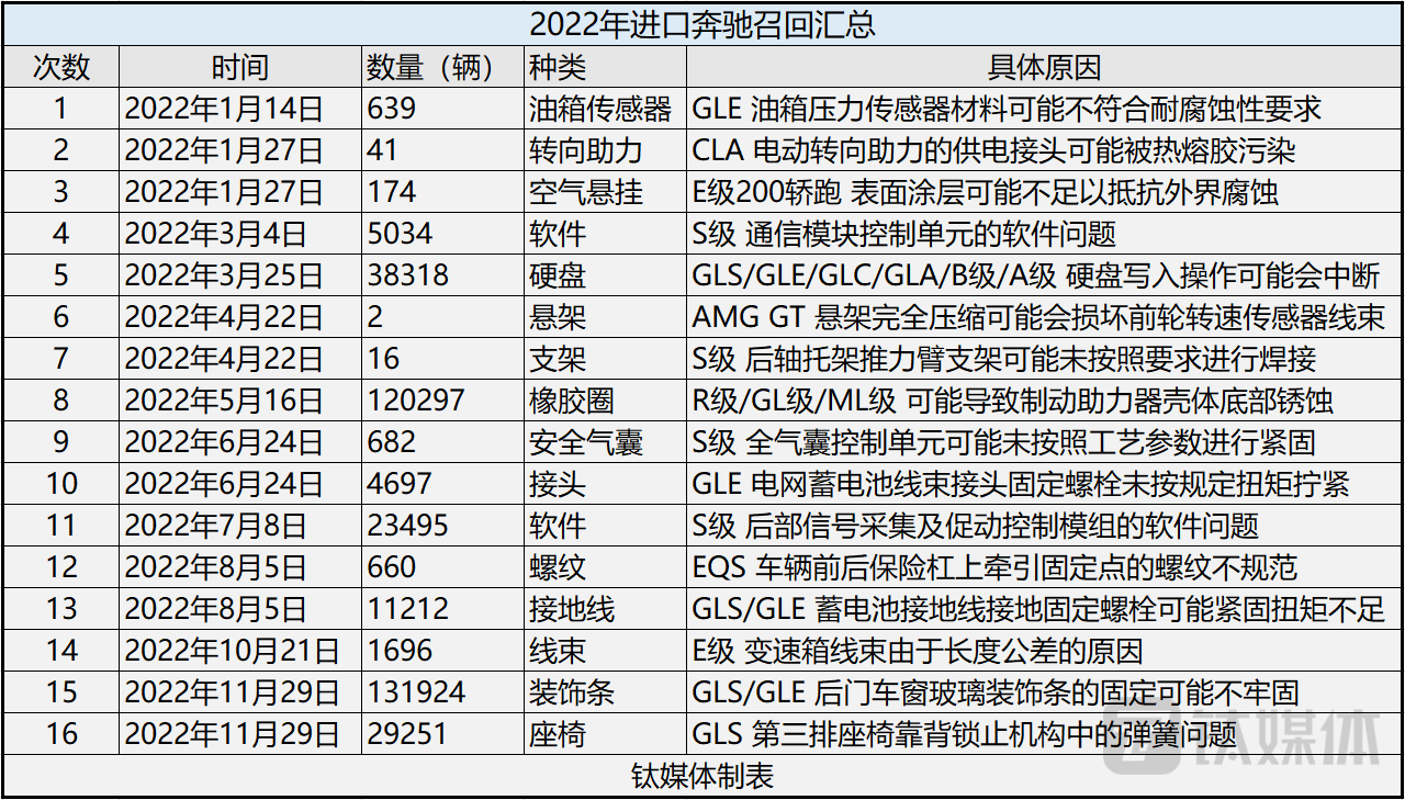 进口奔驰召回约36万辆,国产奔驰召回16万辆