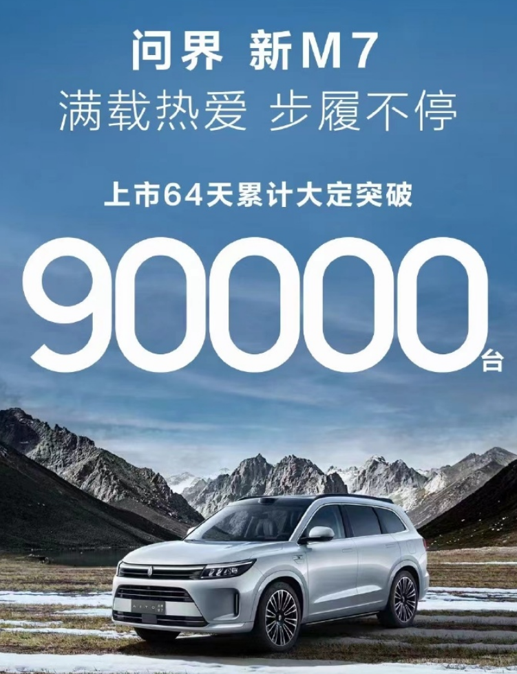官方公布的数据是,目前 M7 的订单已经超过 9 万辆,赛力斯的工厂每天 22 小时开足马力生产,工人师傅的螺丝枪都要打冒烟了。