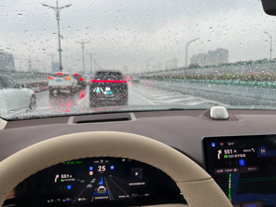 回杭州后,脖子哥还连续好几天在杭州的高架上进行了深度智驾体验,有白天,有夜晚,甚至还有大雨 + 堵车的噩梦路况,总之除了下雪和下雹子,平常该有的路况我全都试着了。