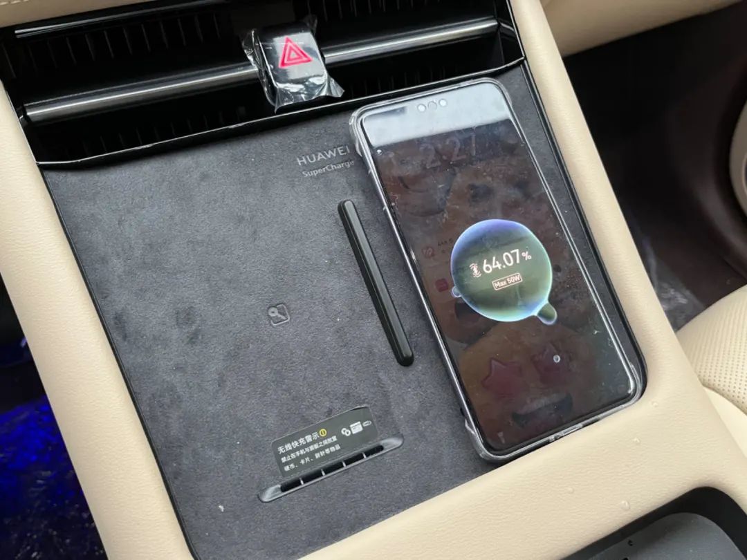 当然能互联的也不止是手机,新 M7 在后排专门为华为 MatePad 预留了两个接口。在连接后,在前排中控屏上就能完成对后排 Pad 的控制。