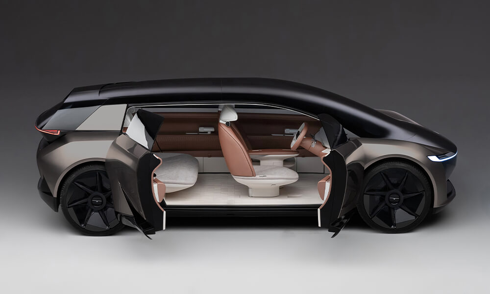 渲染图看起来很科幻、很未来,但发布会愣是全程 PPT ,连个像样的模型都没有。再加上这车身线条、这无 B 柱设计、这对开门,浑身上下都散发着当年贾老板 FF91 的气息。