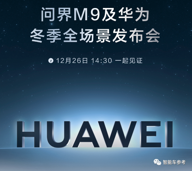 刚刚,华为终端发布公告,此前在秋季发布会开启盲订,预热许久的“年终巨献”问界M9官宣定档12月26日,明天下午2:30发布。