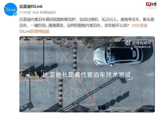 IT之家 1 月 9 日消息,在华为、理想、小鹏、小米等厂商之后,新能源汽车销量老大比亚迪今日也晒出了一段无人代客泊车测试视频,秀了一把肌肉。