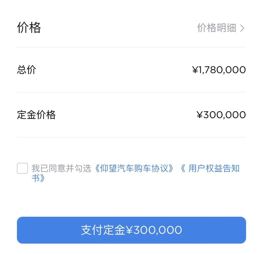 而且,比亚迪估计也没指望仰望 U9 走量,直接给大定的定金设成了 30 万。。。