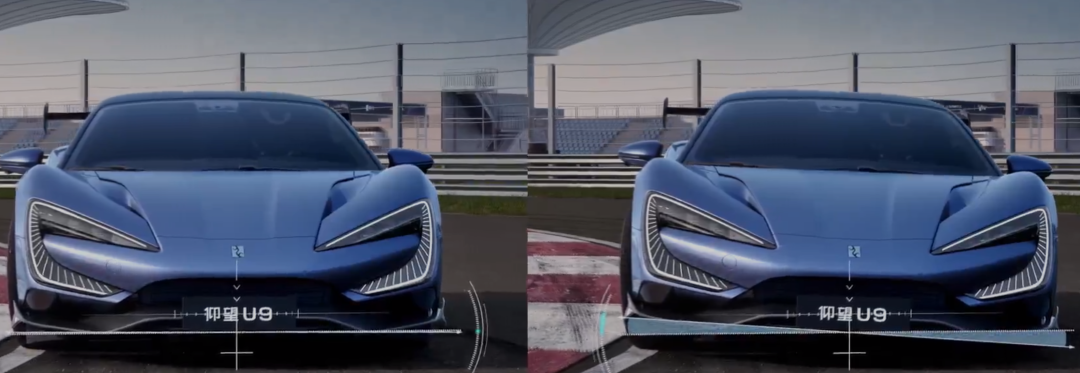 和 U8 有点像,因为四个轮子的转速、扭矩和悬架高度都可以单独控制, U9 可以根据感知系统( 仰望称预瞄系统 )收集到的前方赛道信息,实时调整每个轮子的动力输出和车身的姿态。