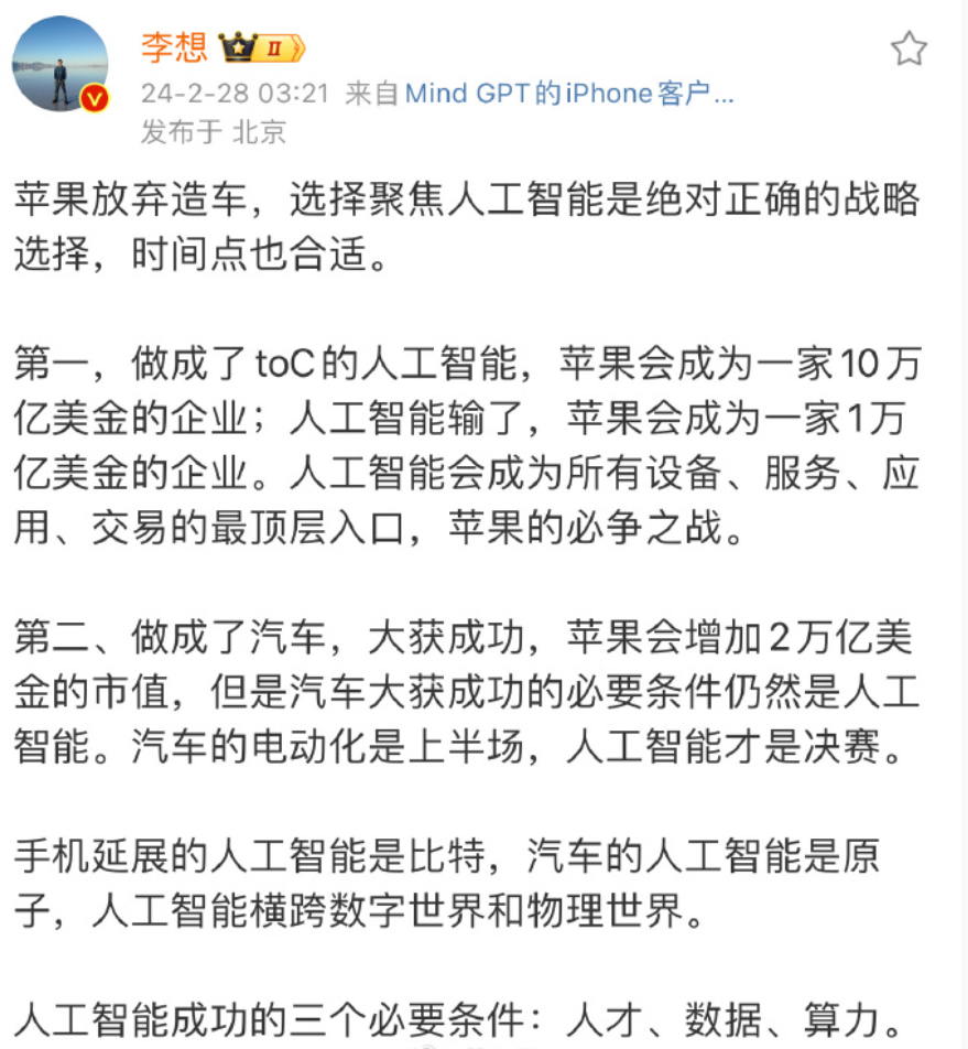 对苹果而言,通关了 AI 再回来刷汽车副本,指不定比现在正面突破还更轻松呢?
