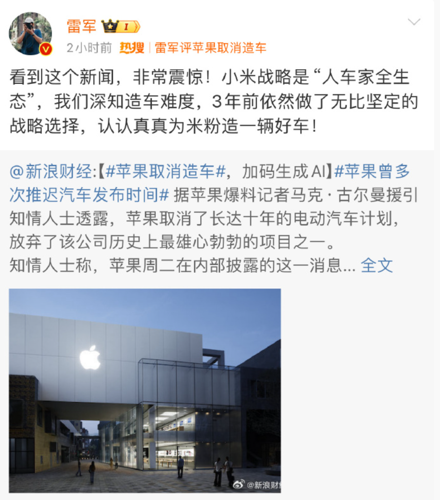 面对这个略显突然的消息,国内的几个车企大佬,像米车的雷军和理想的李想,也是纷纷表达了自己的观点。