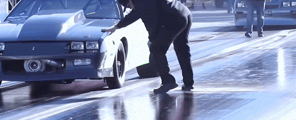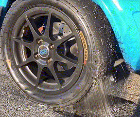 如此狂暴的加速,在我们之前提的 Top fuel 赛车上,会用上跟 F1 赛车一样的光头胎( 全热熔轮胎 ),然后配合像老鼠胶一样的胶地赛道,确保汽车死死粘在地面上。