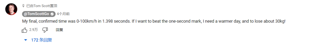但是当车评人 Tom Scott 去试驾的时候,他比团队的车手重了 30kg ,导致最后差出了 0.4 秒。。。