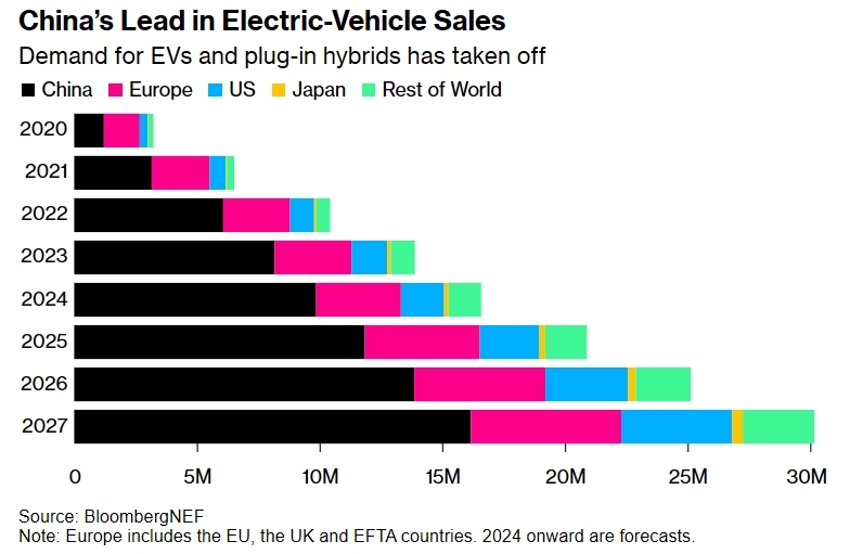 中国电动汽车销量领先