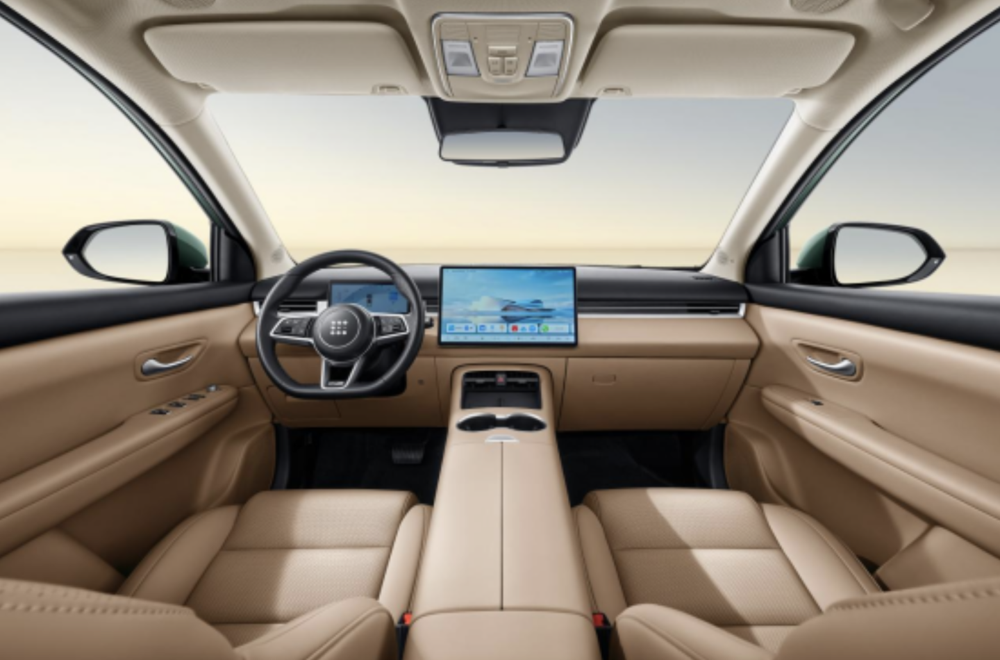参考官图,蓝电 E5 PLUS 内饰方面使用胡桃棕主题色,中控台配有贯穿饰条,使用大量软性材料进行“3D-Mesh 包覆”。同时该车还换装全新样式的三辐方向盘,使用怀挡式换挡机构,配备悬浮式液晶仪表及 15.6 英寸中控。