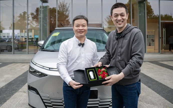 5月11日晚,小鹏汽车官微发文称,董事长何小鹏兑现“打骨折”卖车的承诺,把小鹏X9亲自交到蔚来董事长、CEO李斌手上。