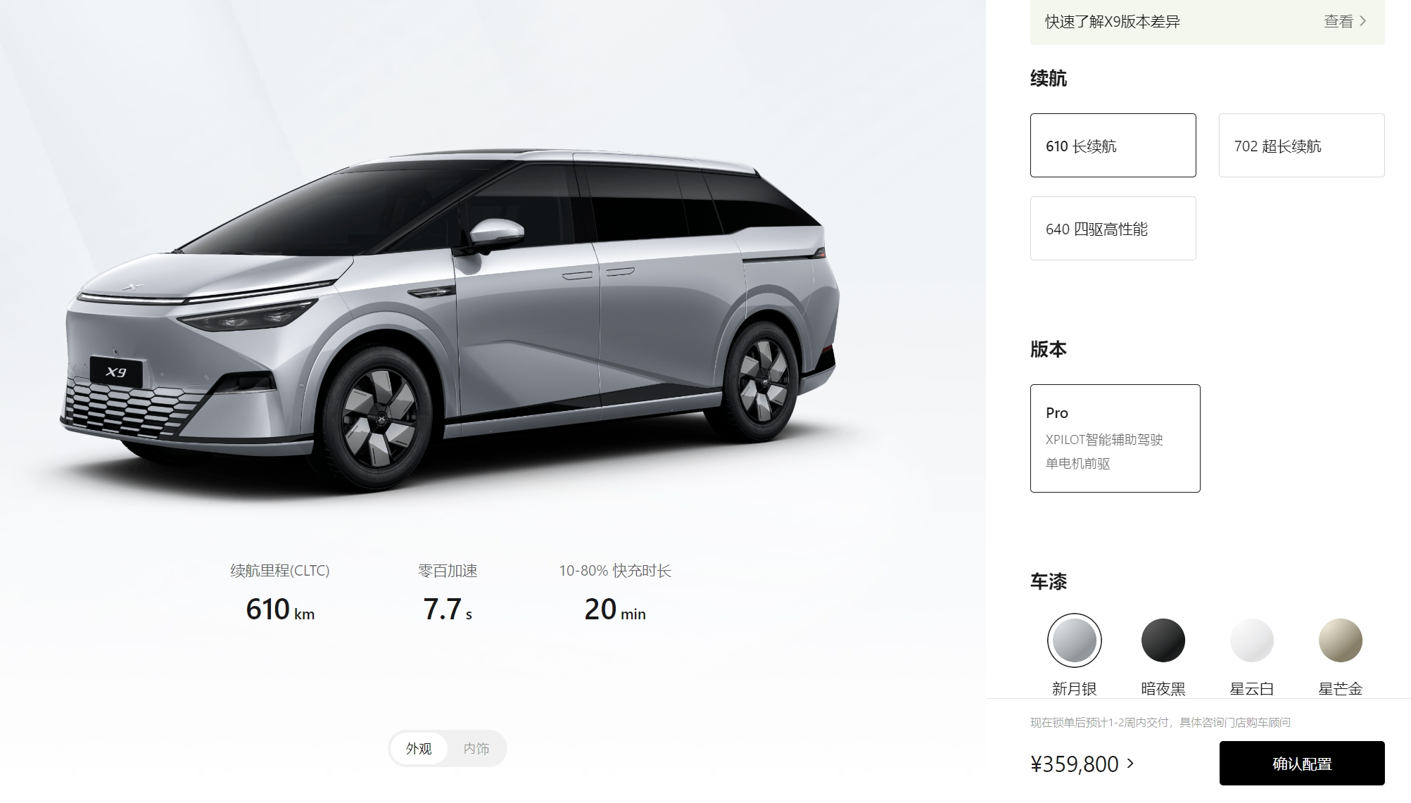 小鹏官网显示,小鹏X9起售价是35.98万元,今年1月份正式登场。