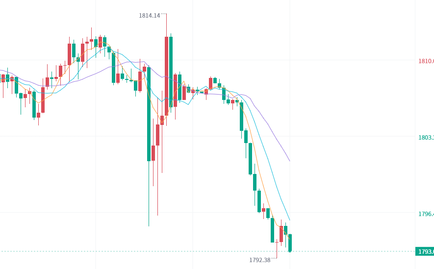 2、建议在1792-1794附近考虑做多,止损5美金,目标看1806-1828美金附近