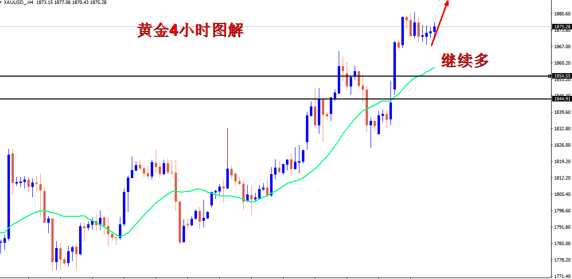 黄金支撑位上移至1860,金价毫无下跌之意,但只有稍稍下跌都是干多的好机会。没有什么好解释的,回撤就是干多的好机会。